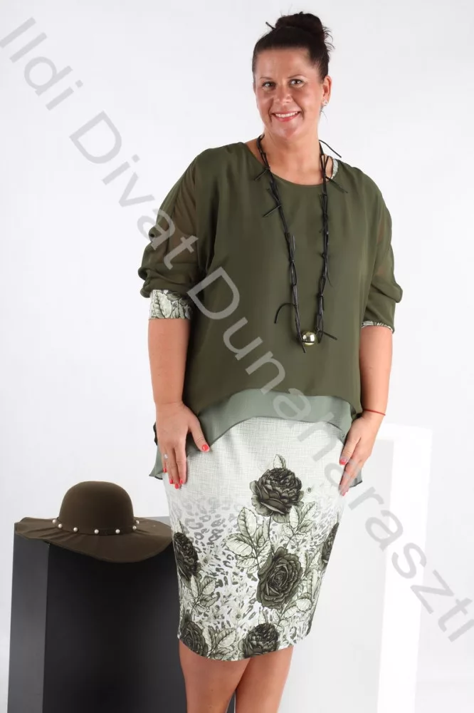 ADM Zöld Virágos Kétrészes Ruha