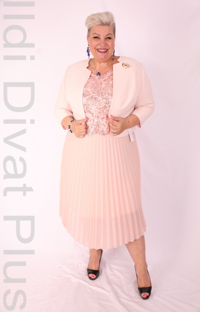 Agis rózsaszín rakott aljú csipkés flitteres tetejű ruha+ Blézer.