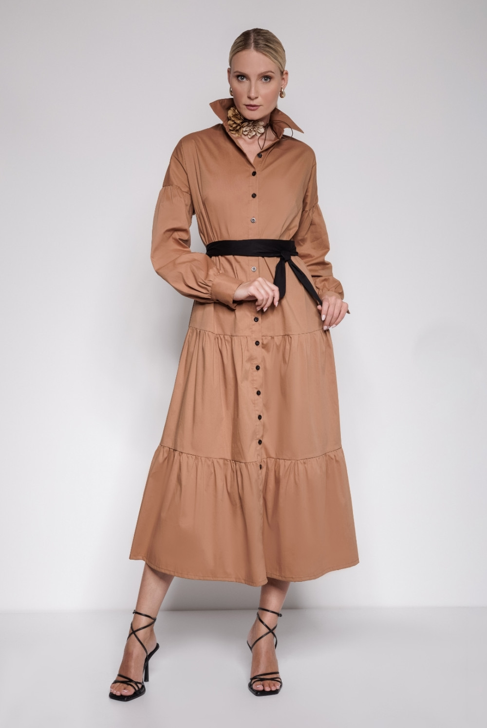 Laza elegancia rohanós hétköznapokra – az AMNESIA Mutah ruha visszafogott nőies részleteivel megkönnyíti a reggeli öltözködést. Gombos és galléros nyakmegoldása finommá varázsolja megjelenésedet. A tökéletes ruha, amelyből kiegészítőkkel sokféle look-ot létrehozhatsz. Válaszd a klasszikus feketét vagy a szezon kedvenc camel színét!