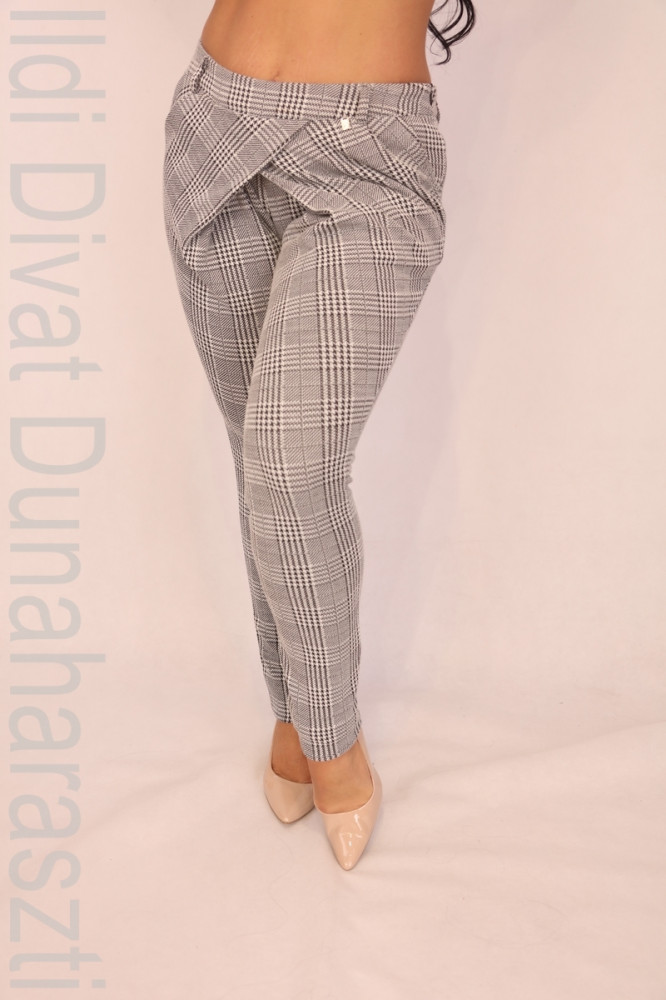 Amnesia Szandi nadrág sportos fazonú fekete-fehér színben, oldalzsebekkel, elején átlapolással, derekán fém márkajelzéssel készült.
