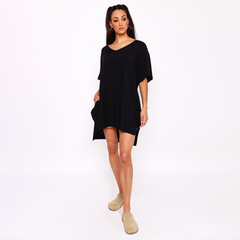 A bő szabású darabok kedvelői imádni fogják az AMNESIA Lenke ruhát. Vékony, finom anyaga szép esést ad ennek a tunika fazonú ruhának, amelyet akár önmagában, akár a kedvenc bőszárú nadrágoddal vagy egy basic leggings-szel is viselhetsz. A fekete must-have alapdarab, a khaki változat pedig elegáns különlegesség.