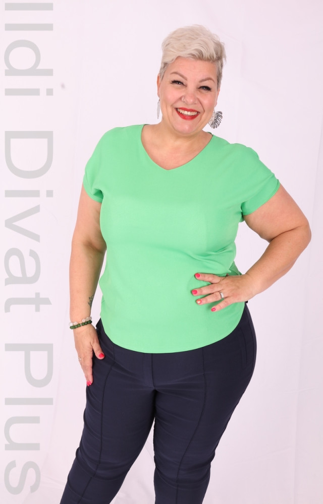 Antuira zöld színű, V-kivágott, enyhén karcsúsított fazonú felső.