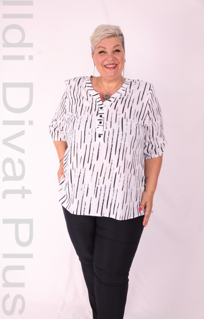 Attane Fehér-Fekete mintás nyakán gombos muszlin blúz