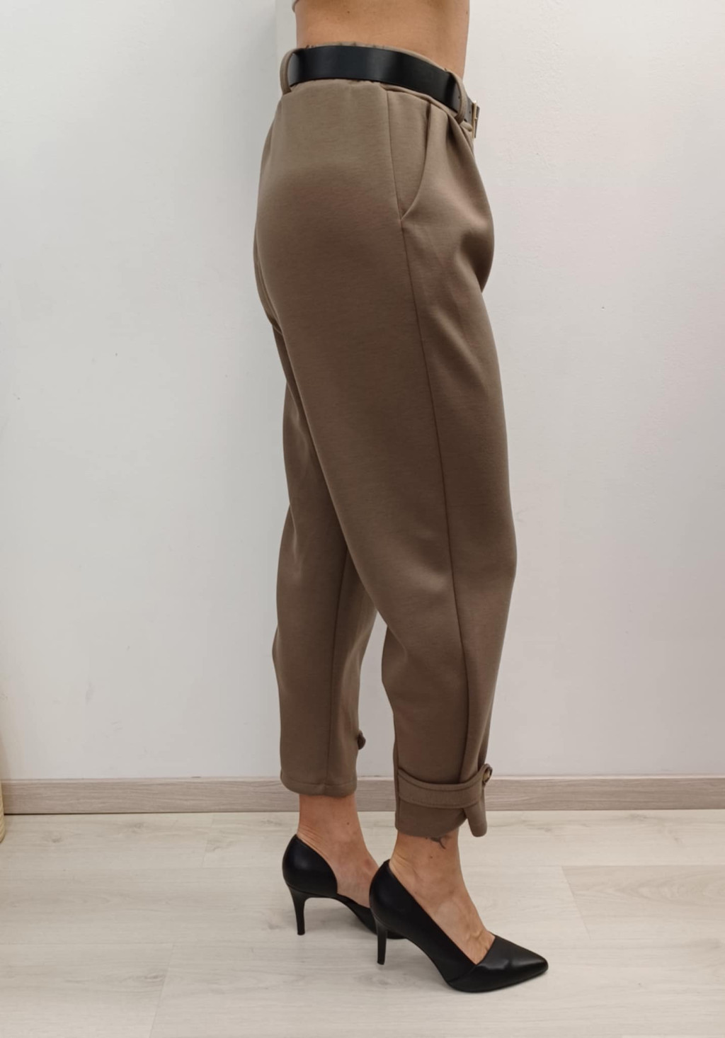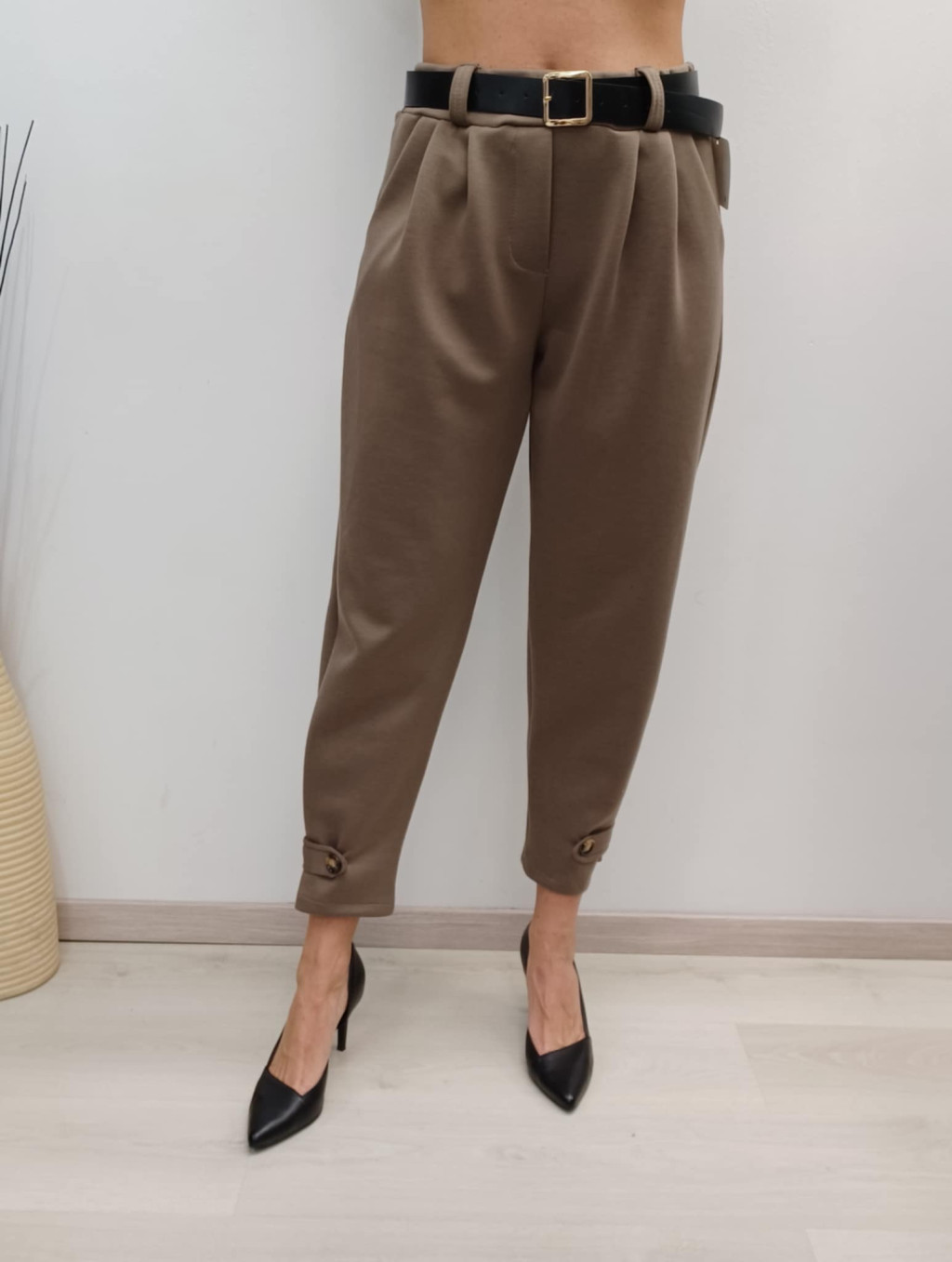 Autumn Collection mogyoró gumis derekú alján gombos nadrág.