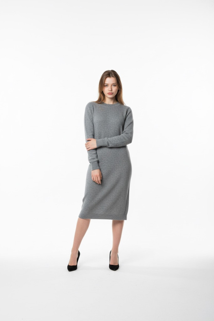 Autumn Collection szürke anyagában kötött mintás cakkos nyakú ruha.