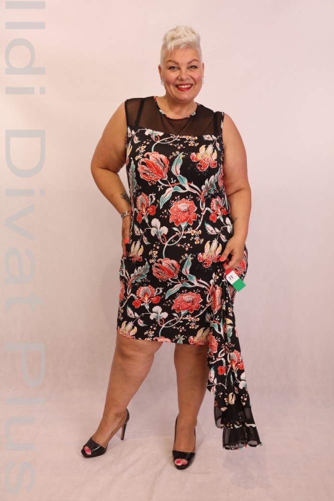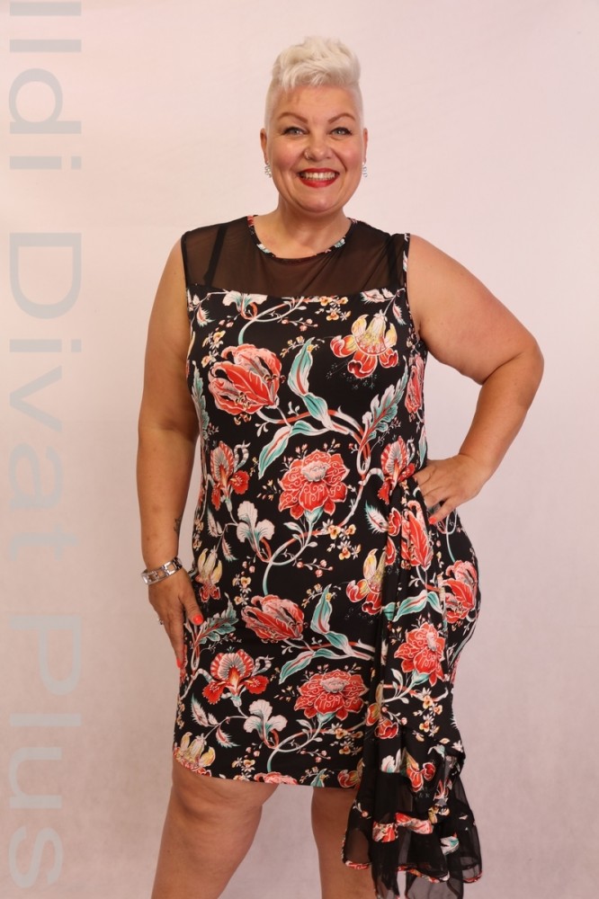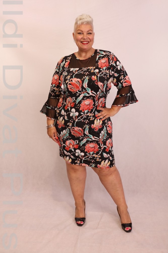 Beauty Sötétkék Alapon Piros Virág Mintás Komplé