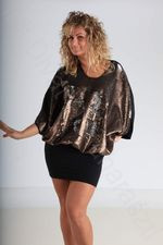 Black&White fekete-arany színű, kerek nyakú, flitteres, felül lezser, alúl karcsúsított fazonú ruha.