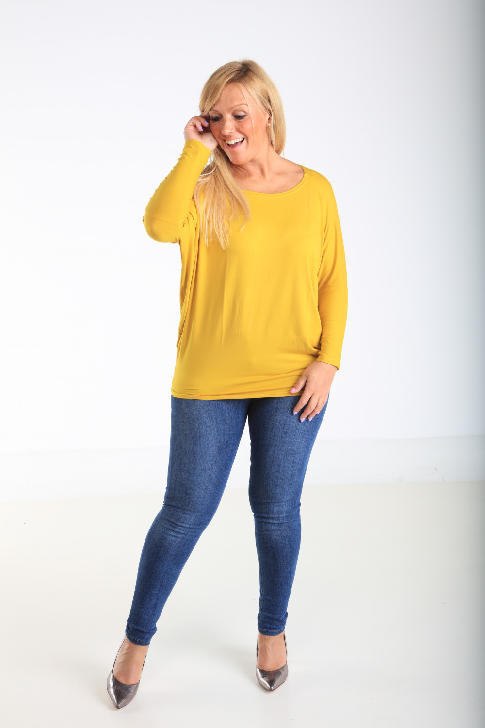 Black&White mustársárga színű, kerek nyakú, bő fazonú, alján szűkített felső.