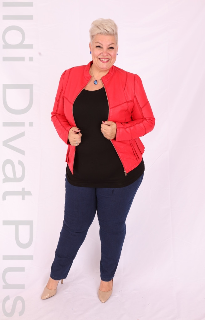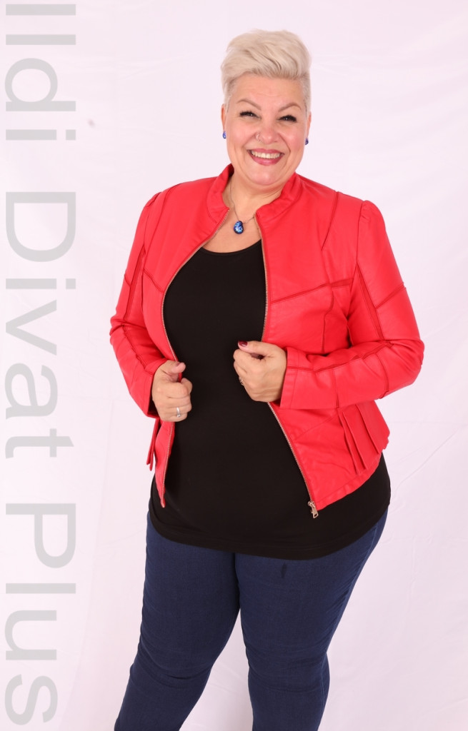 Bludeise piros zippes neccbetétes műbőr kabát.