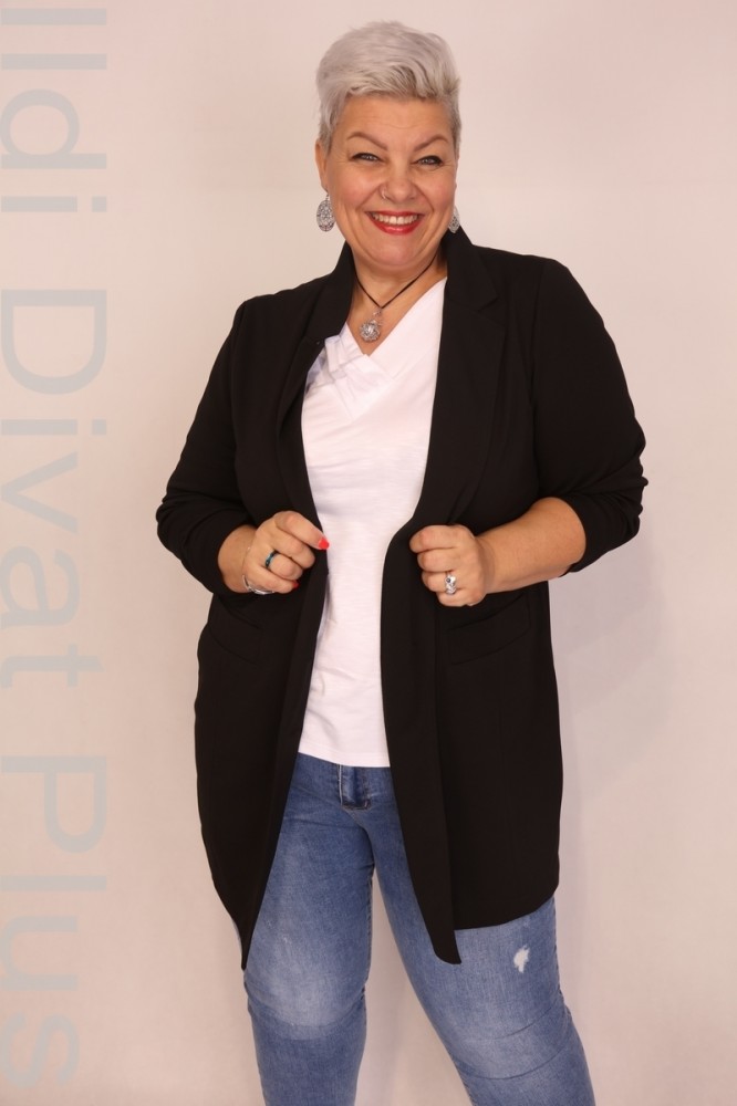Caremo fekete színű, galléros, gombos, hosszított blézer.