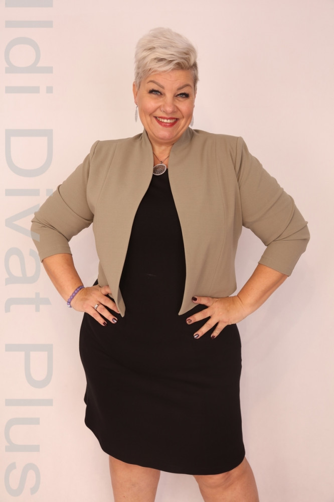 Caremo khaki színű, karcsúsított fazonú, hosszított boleró.