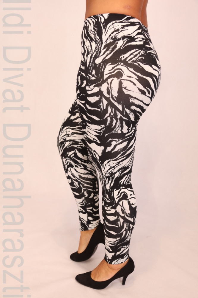 Caremo fekete-fehér mintás, derék részén gumírozott, streccses anyagú leggings.