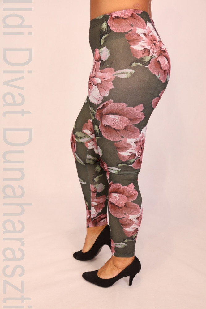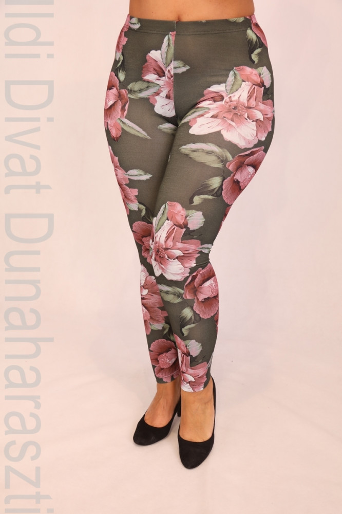 Caremo zöld alapon virágmintás, derék részén gumírozott, streccses anyagú leggings.