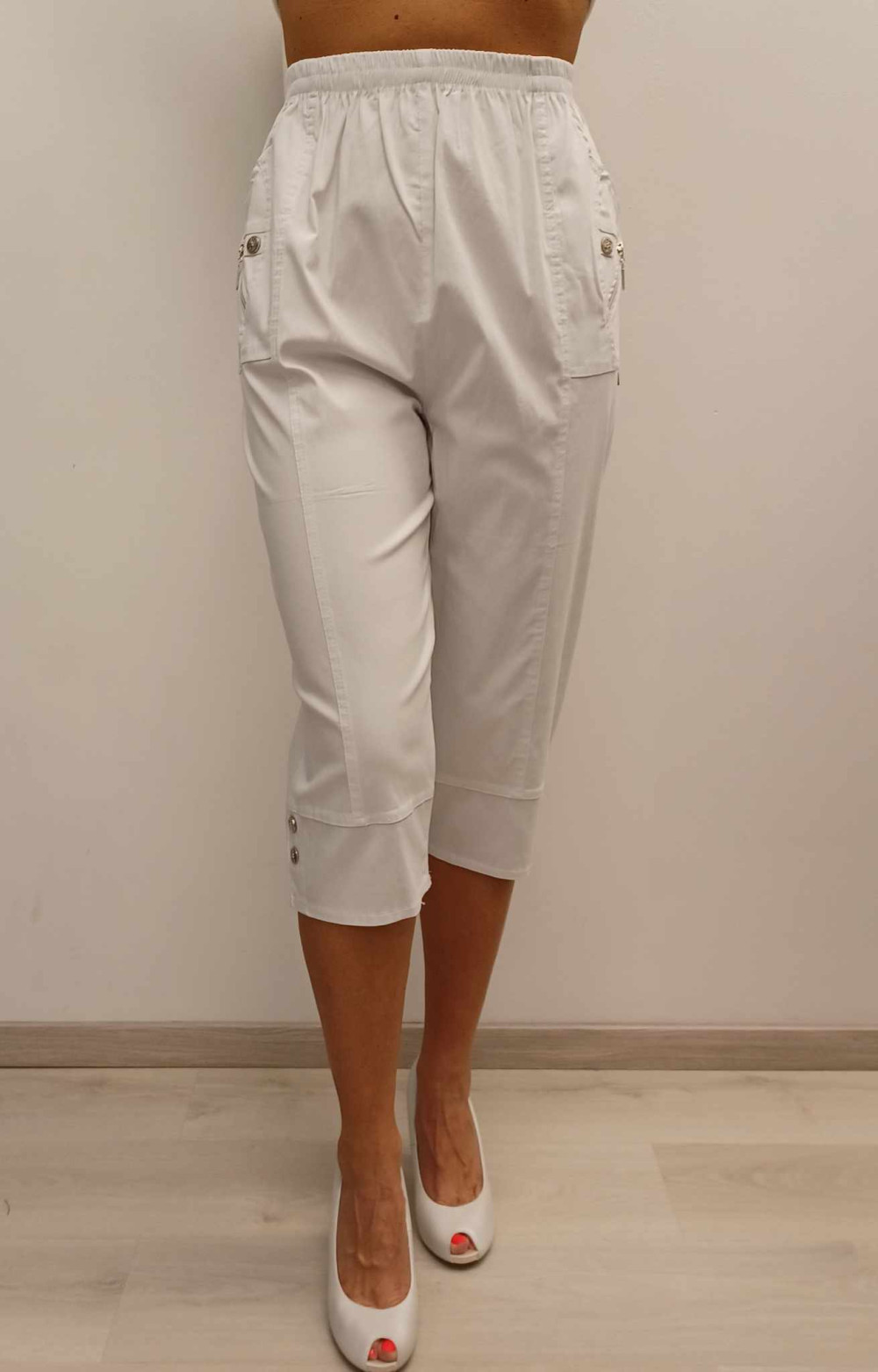 Fehér vászon gumis derekú sportos 3/4 nadrág.