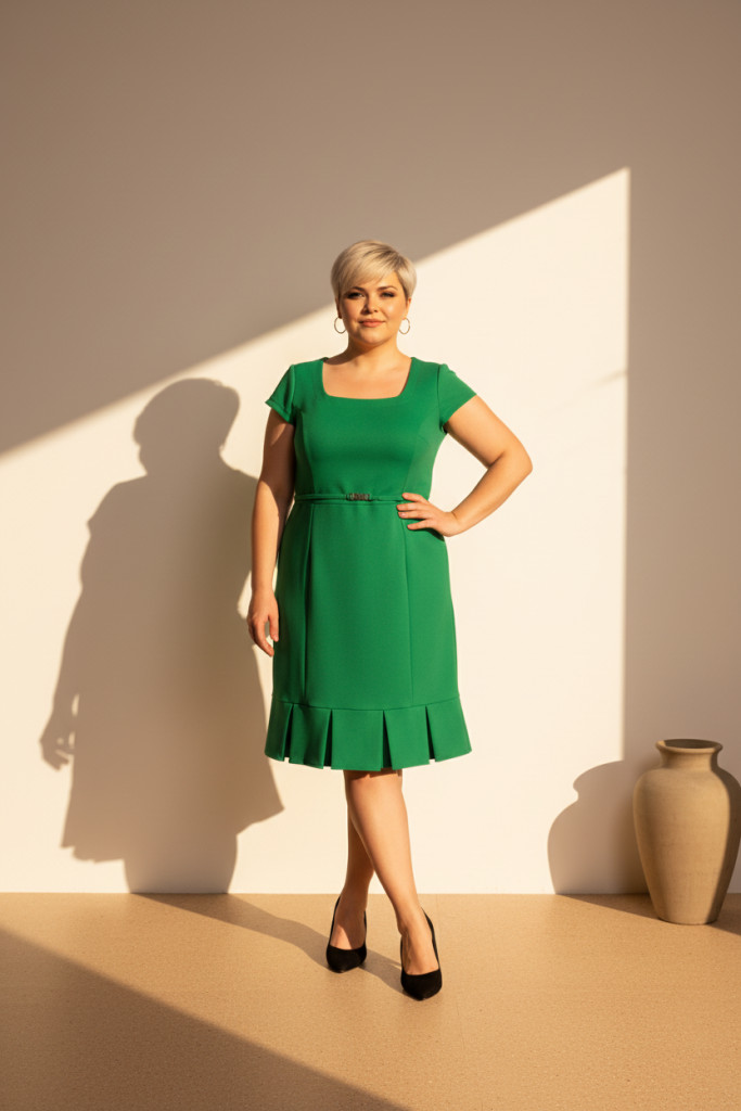 Classis zöld derekán szabott alján fodros ruha.