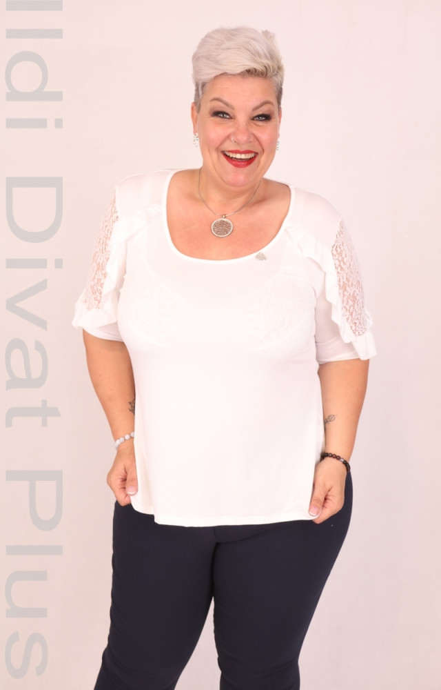 Crafty Clothes Ekrü Csipkés Vállú Felső-36