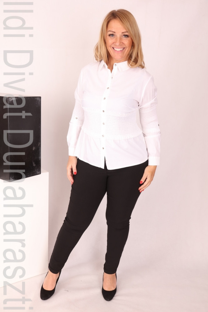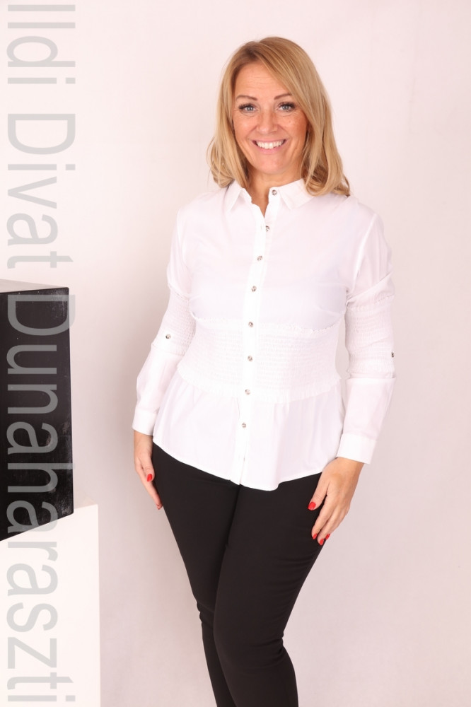 Darkwin fehér színű, gombos, galléros, derék részen gumírozott, karcsúsított fazonú ing.