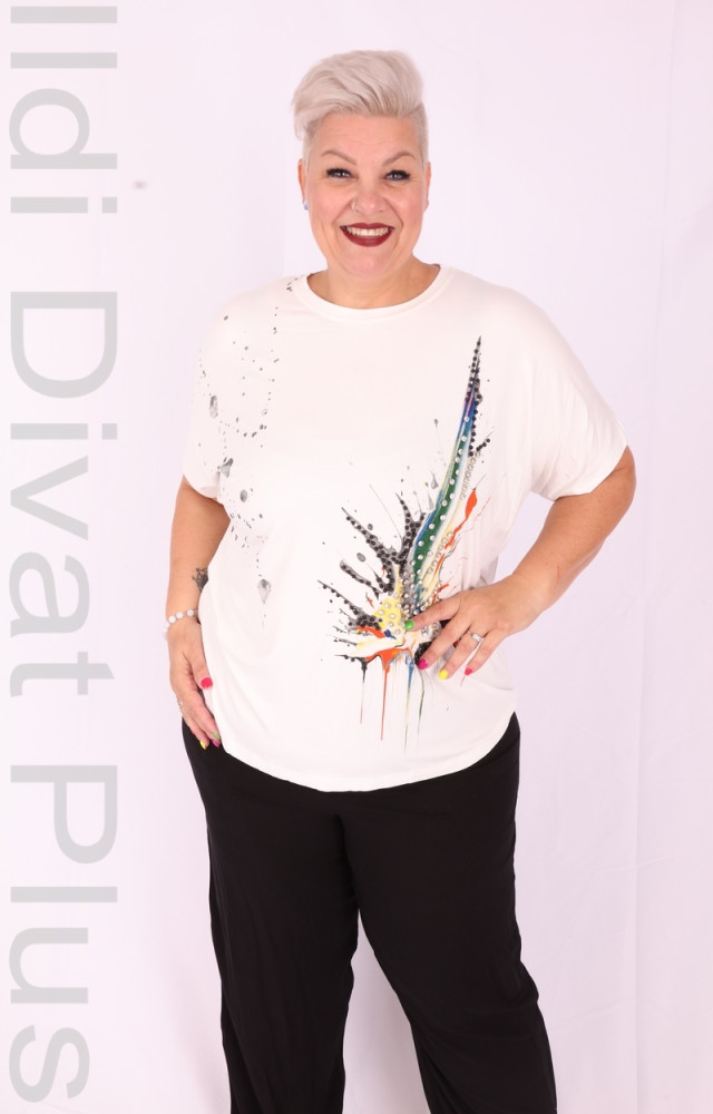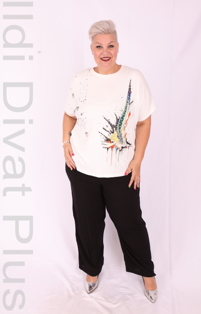 Darkwin fehér alapon színes mintás, kerek nyakú, kő díszítéses, lezser fazonú tunika.