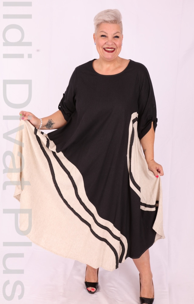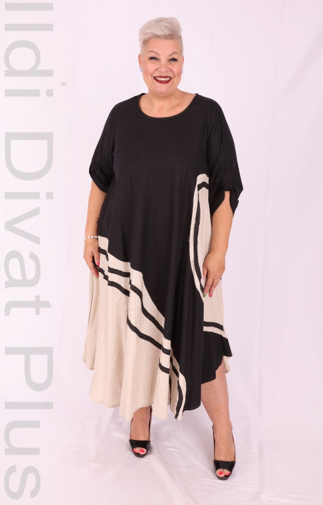 Darkwin fekete alapon beige betétes, kerek nyakú, A-vonalú ruha.