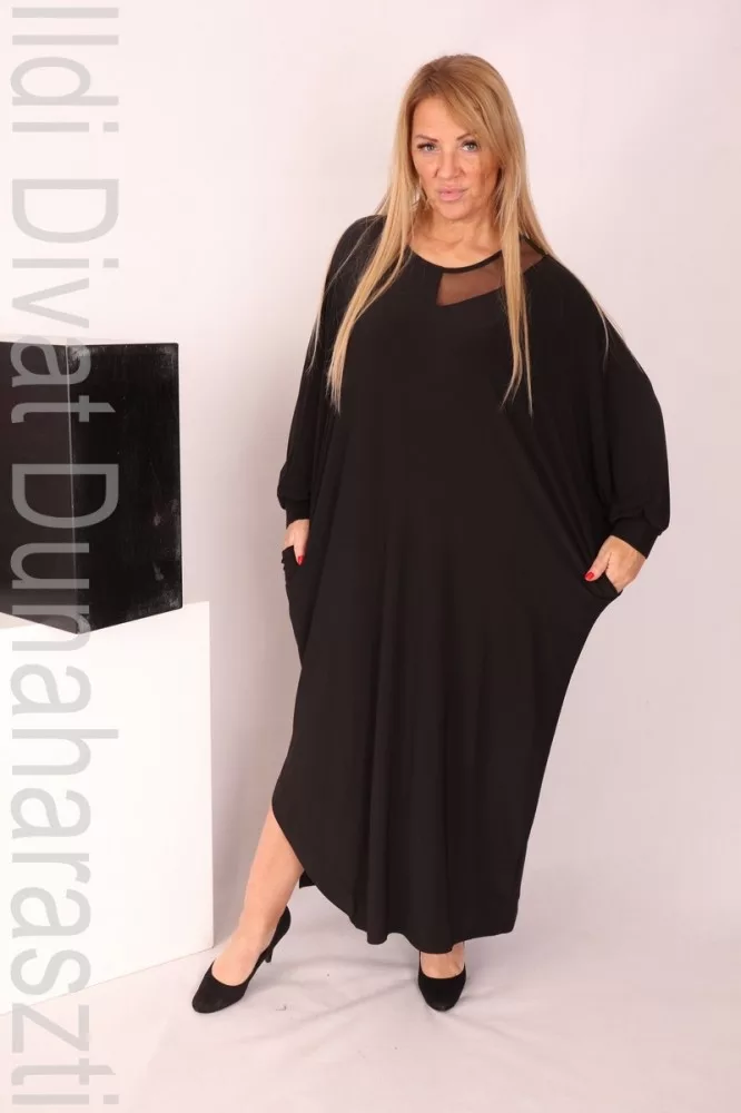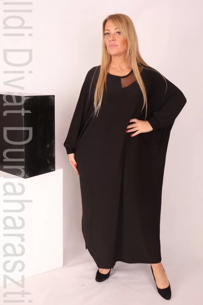 Darkwin fekete színű, kerek nyakú, vállán neccbetétes, lezser fazonú ruha.