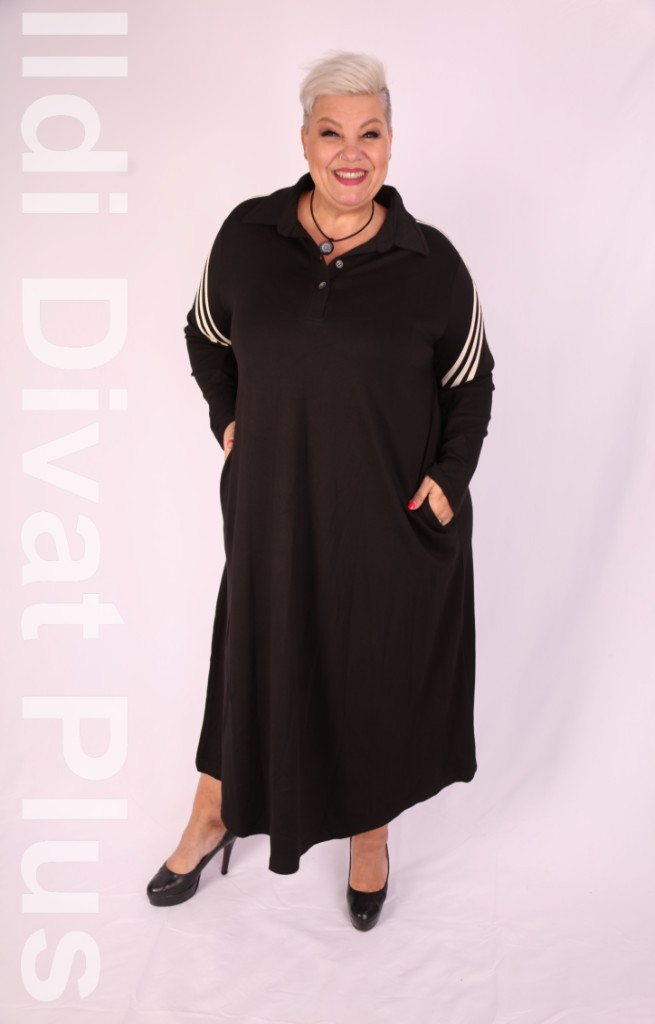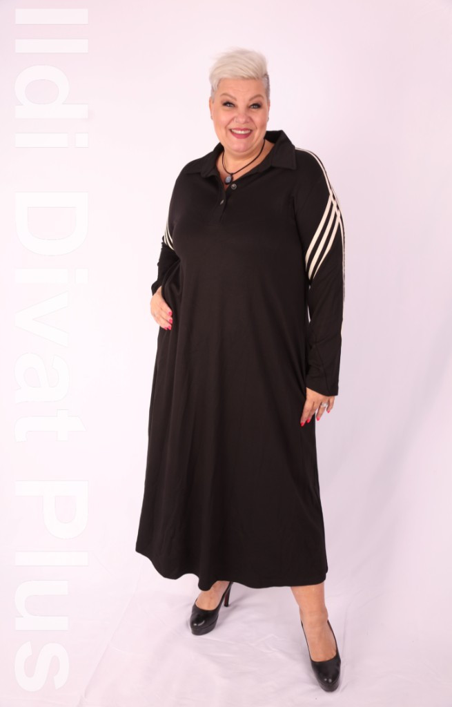 Darkwin fekete alapon fehér betétes galléros A vonalú ruha.