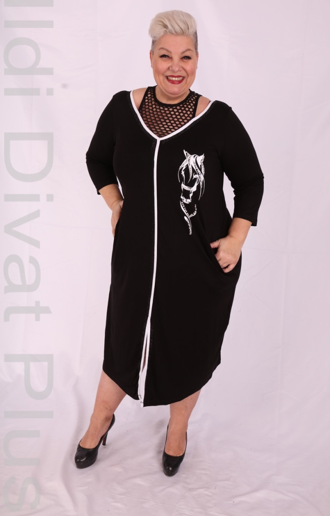 Darkwin fekete alapon fehér lómintás köves nyakán hálós ruha.