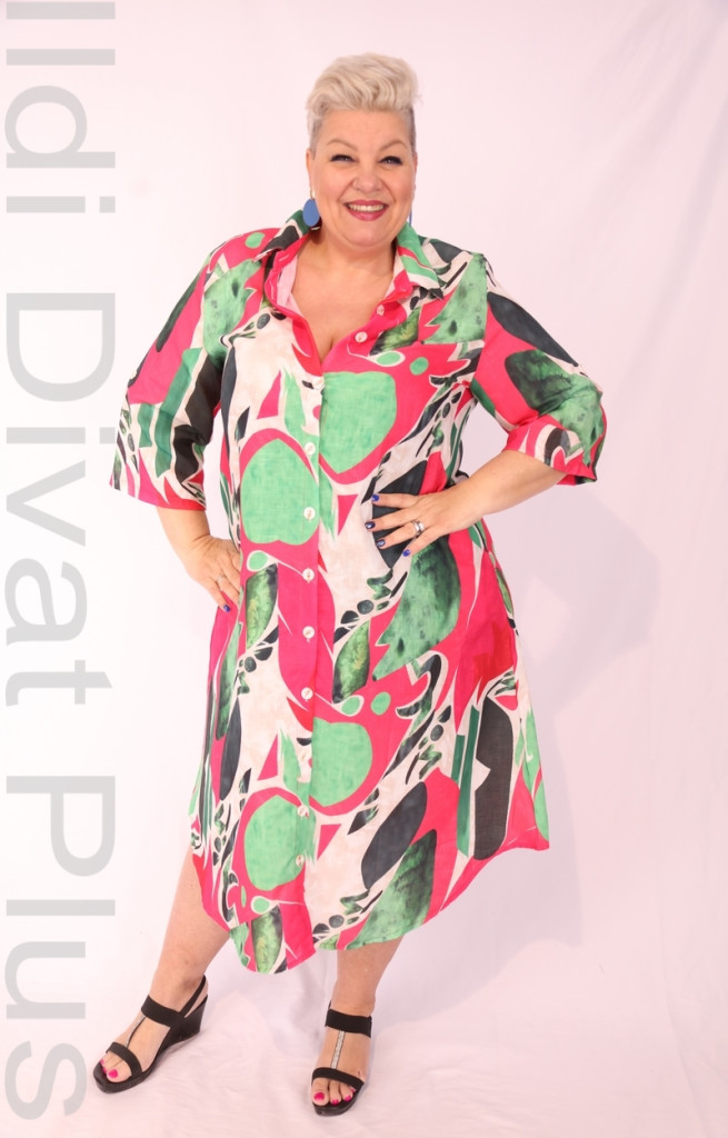 Darkwin pink-zöld mintás galléros ,gombos ingruha.