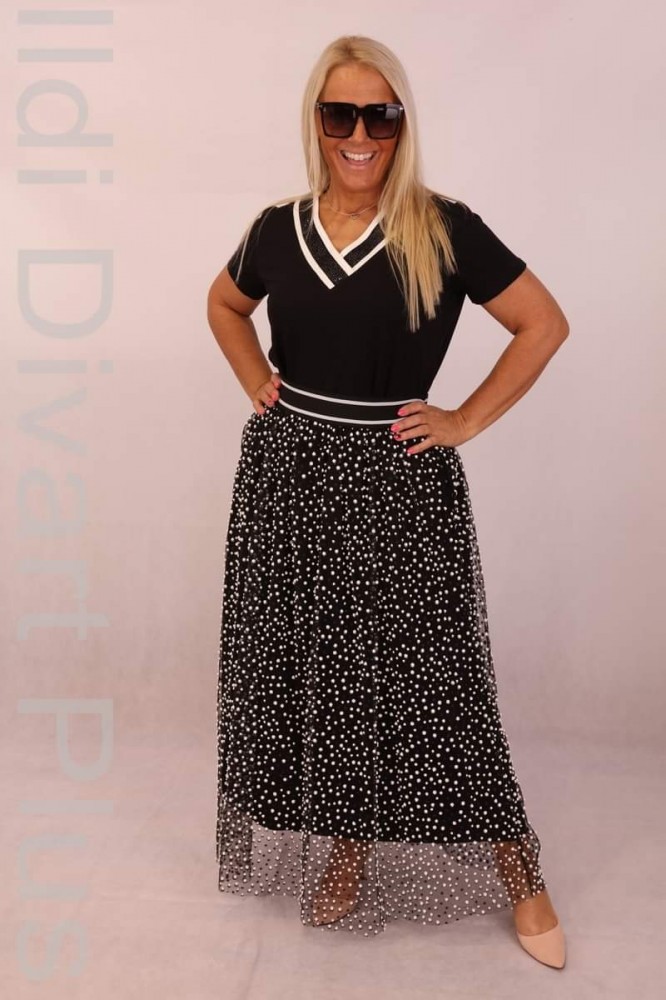 Darkwin fekete színű, V-kivágott, kő díszítéses, enyhén lefelé bővülő fazonú felső.