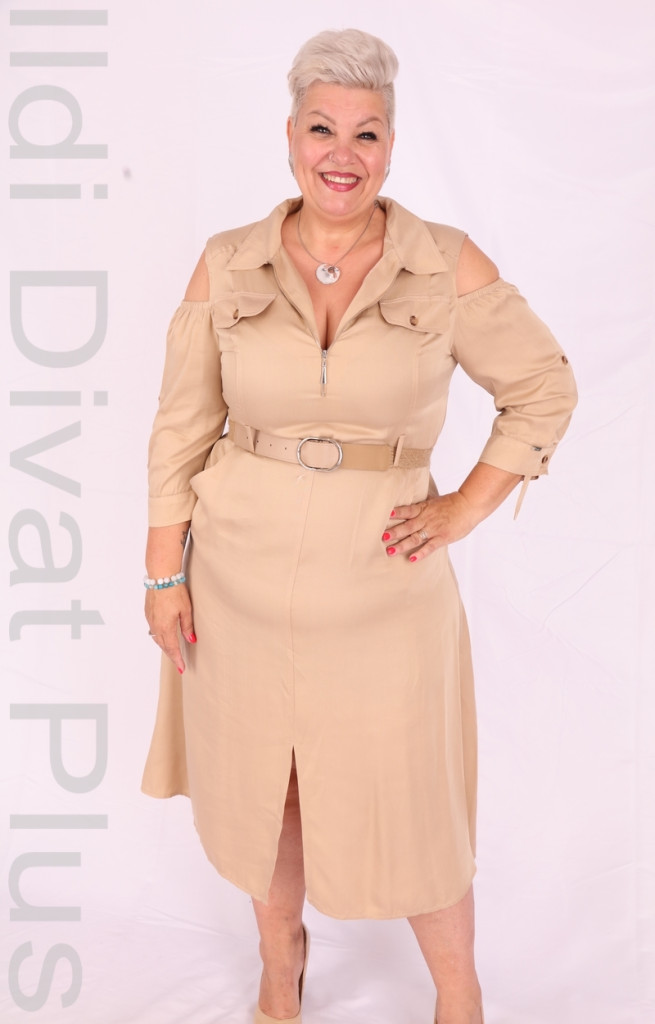 Barna galléros nyakán zippes derekán öves A vonalú ruha.