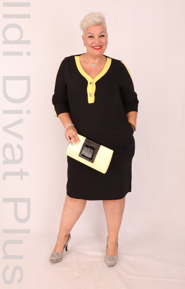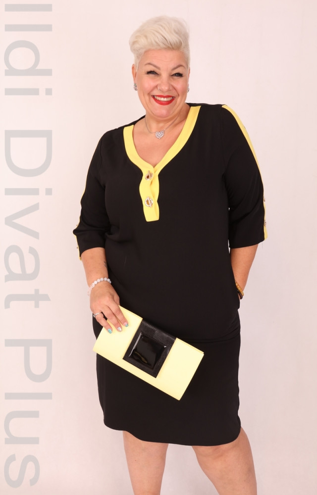 De Whites Fekete-Sárga Betétes Ruha