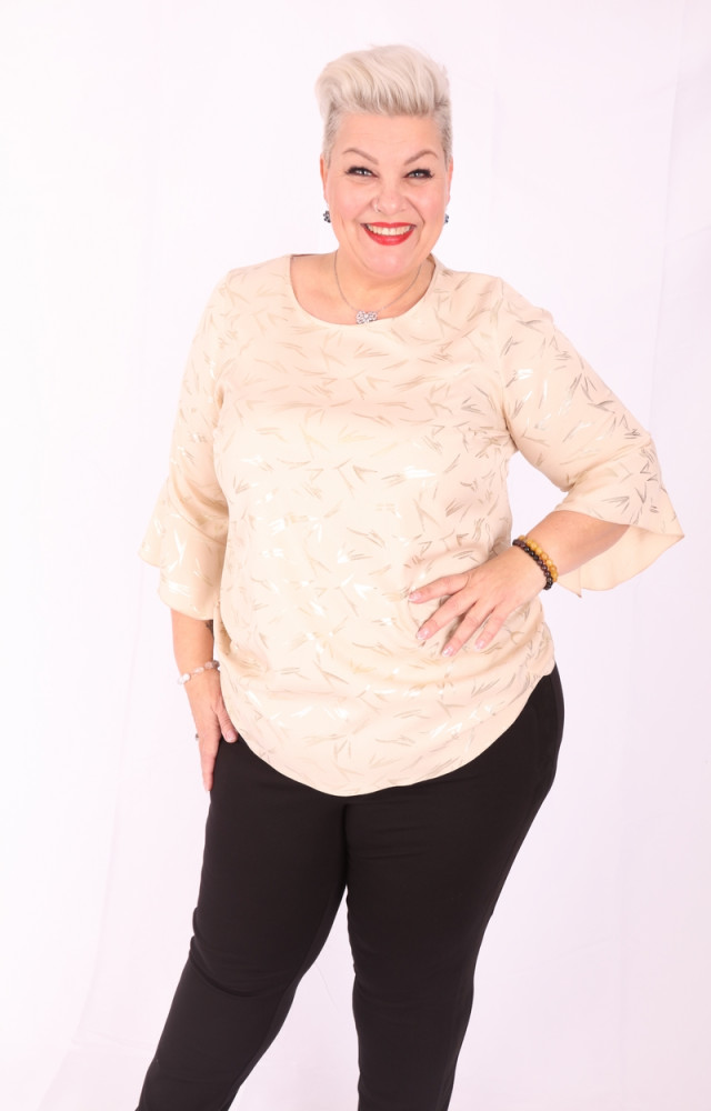 Dorian beige-arany mintás, kerek nyakú, lezser fazonú felső.