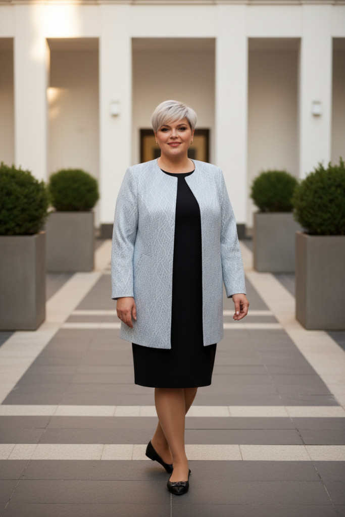 Dorota Kék-Ezüst Mintás Hosszított Blézer-44