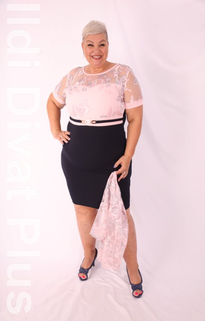 Elegance kék-púder csipke betétes ruha+ csipkés kabátka.