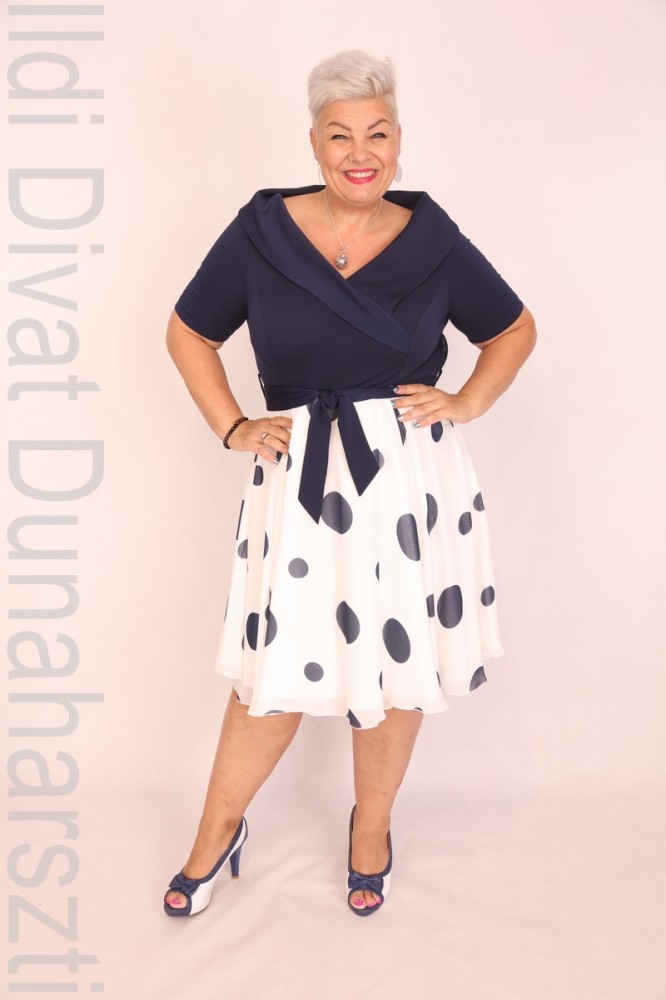 Elli Kék-Fehér Pöttyös Ruha