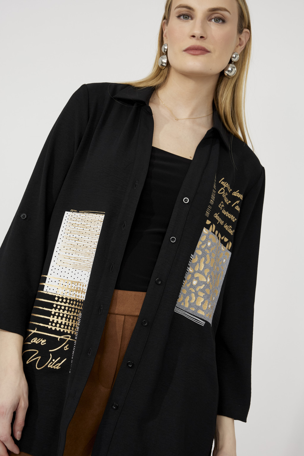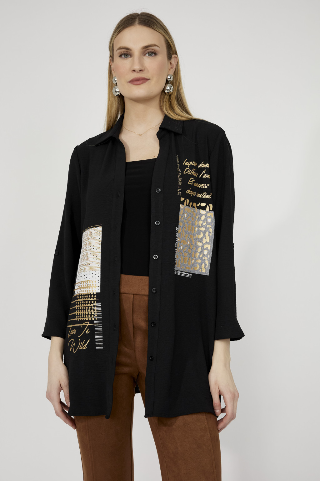 Frank Lyman fekete alapon arany mintás galléros, gombos ing.
