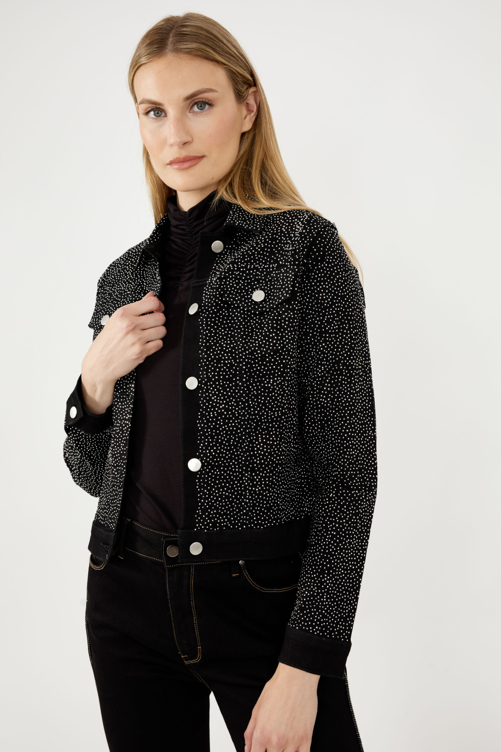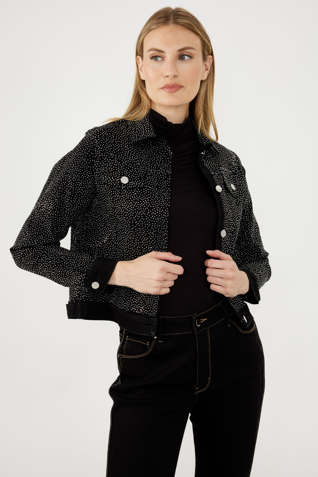Frank Lyman fekete alapon ezüst köves tavaszi farmekabát.