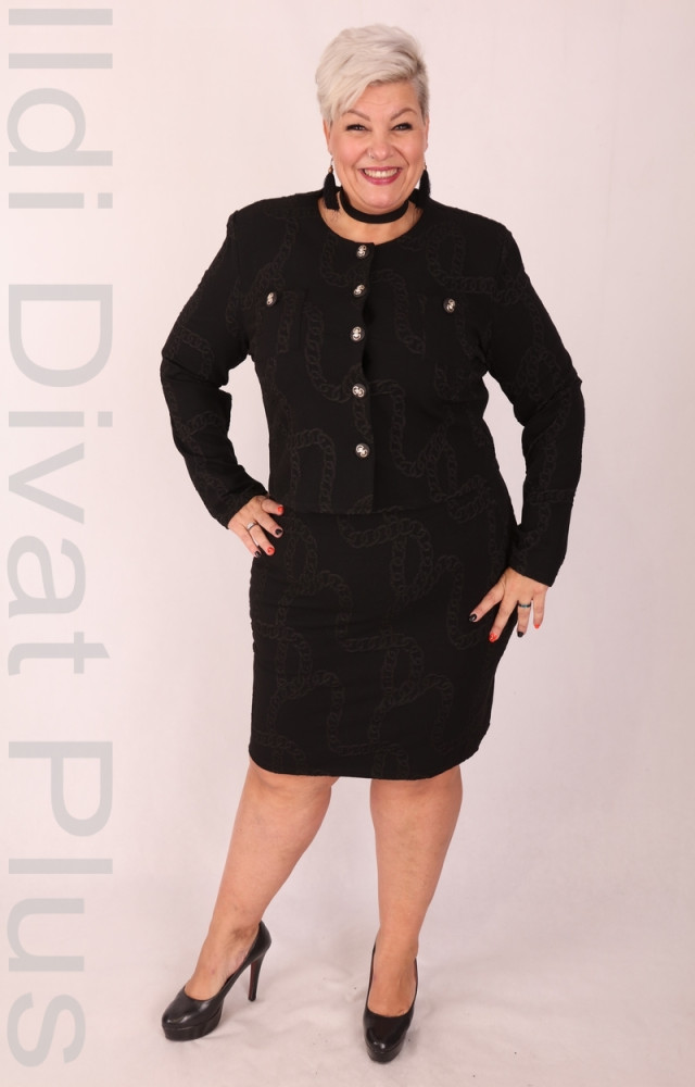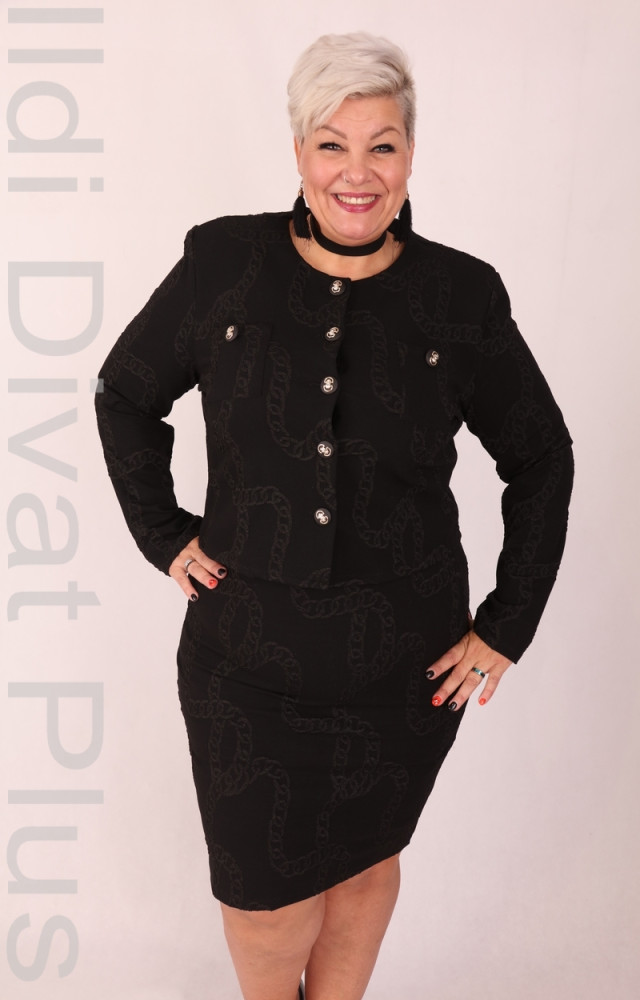 Frank Lyman fekete alapon lánc mintás, elején gombos, karcsúsított fazonú blézer.