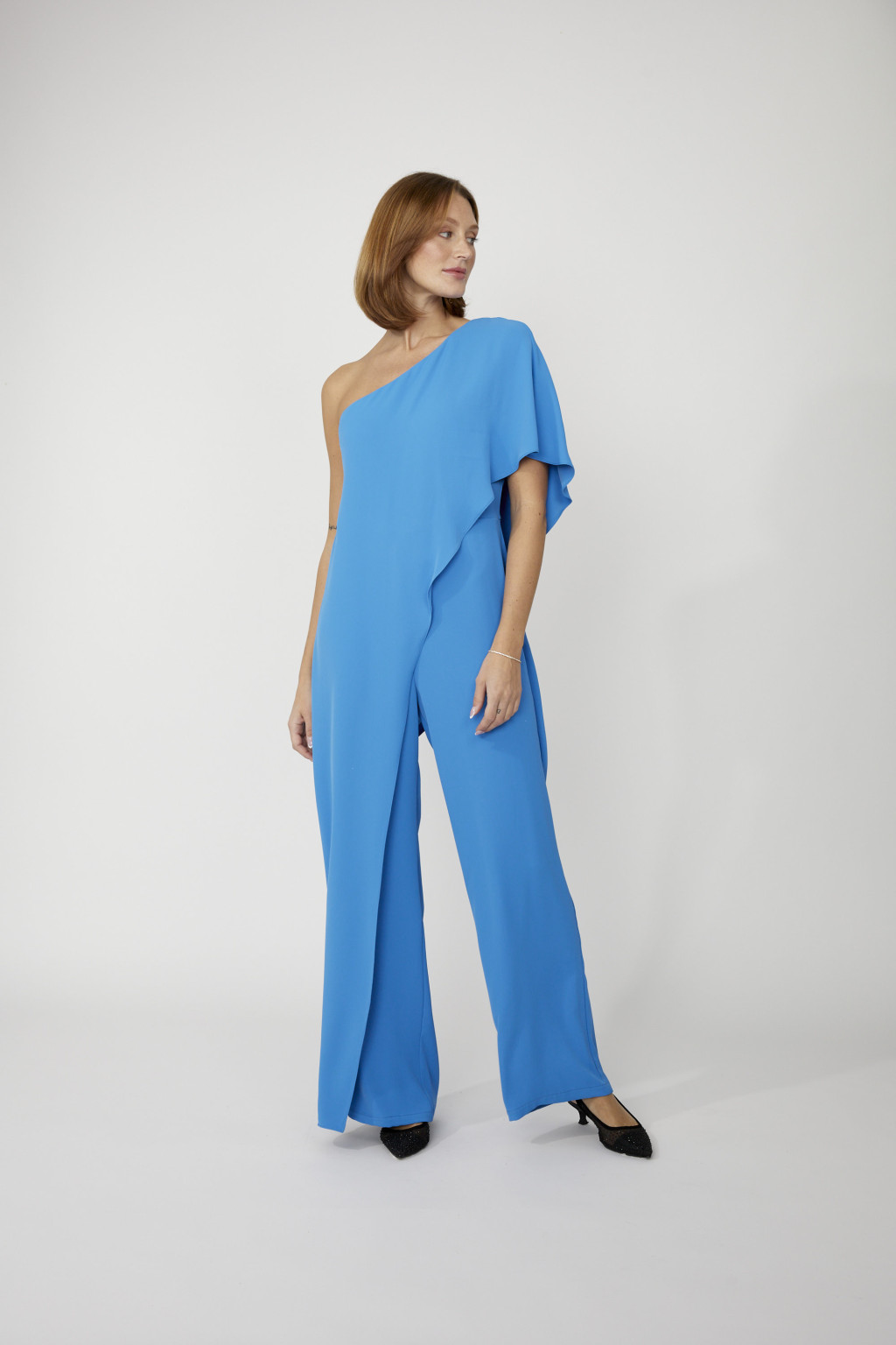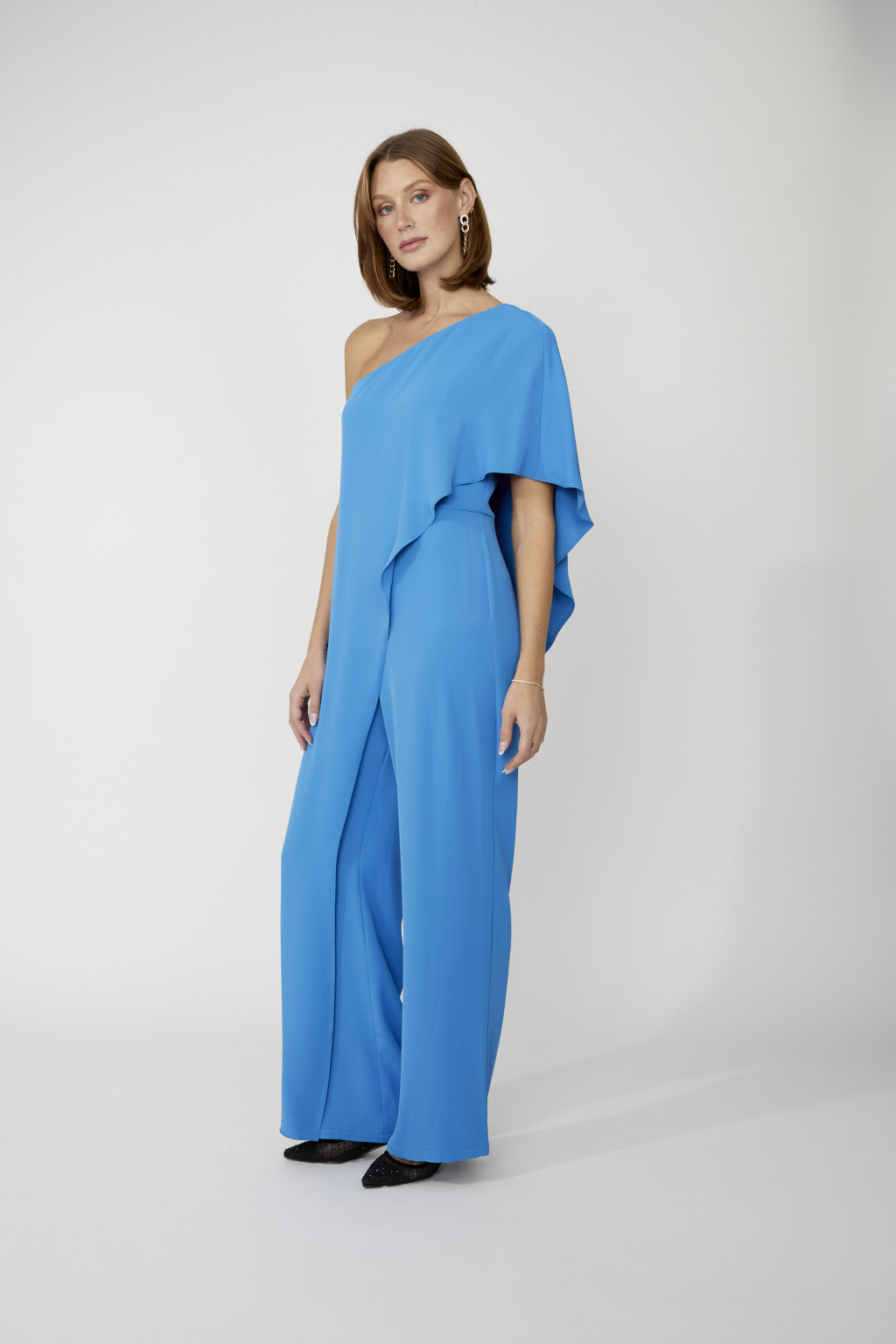 Frank Lyman kék színű, átlapolt, lebernyeges, lezser, egyenes szárú overál.