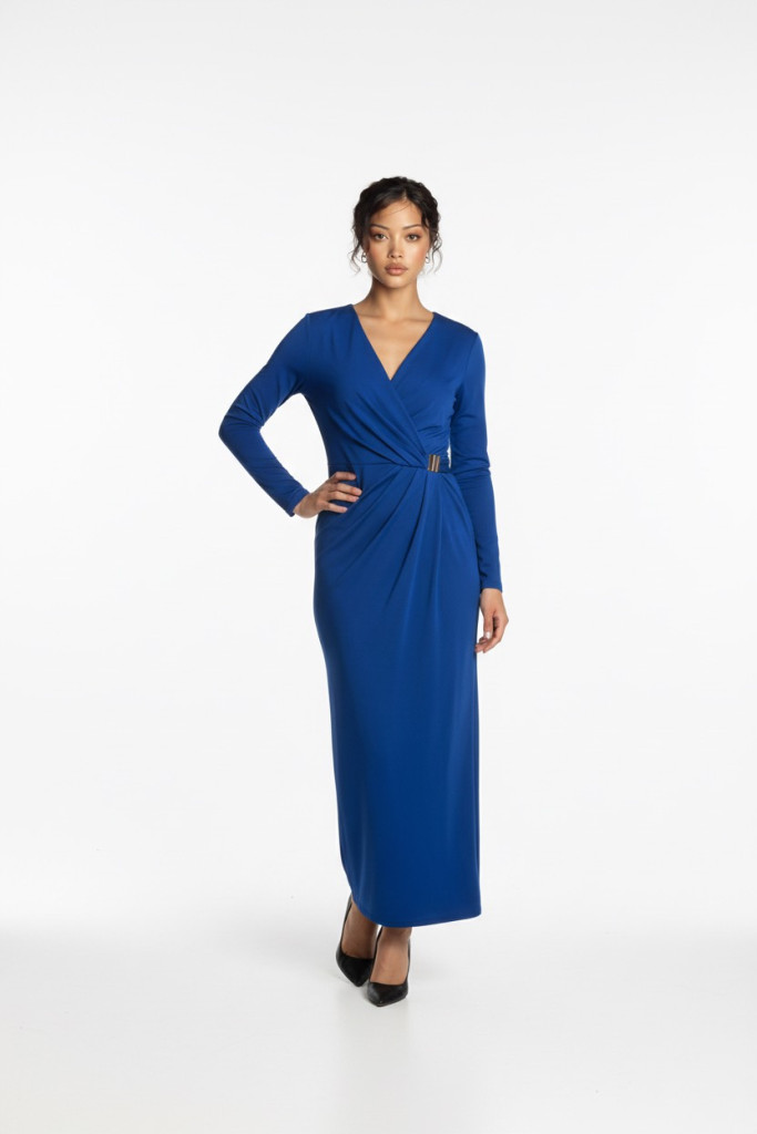 Frank Lyman királykék alapon oldalán ráncolt ezüst díszes alaklmi maxi ruha.