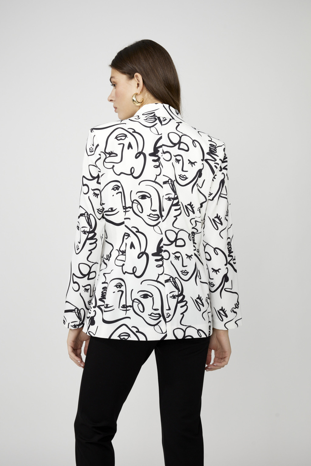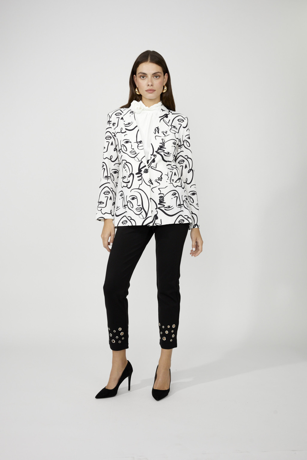 Frank Lyman fehér-fekete mintás galléros gopmbos blézer.