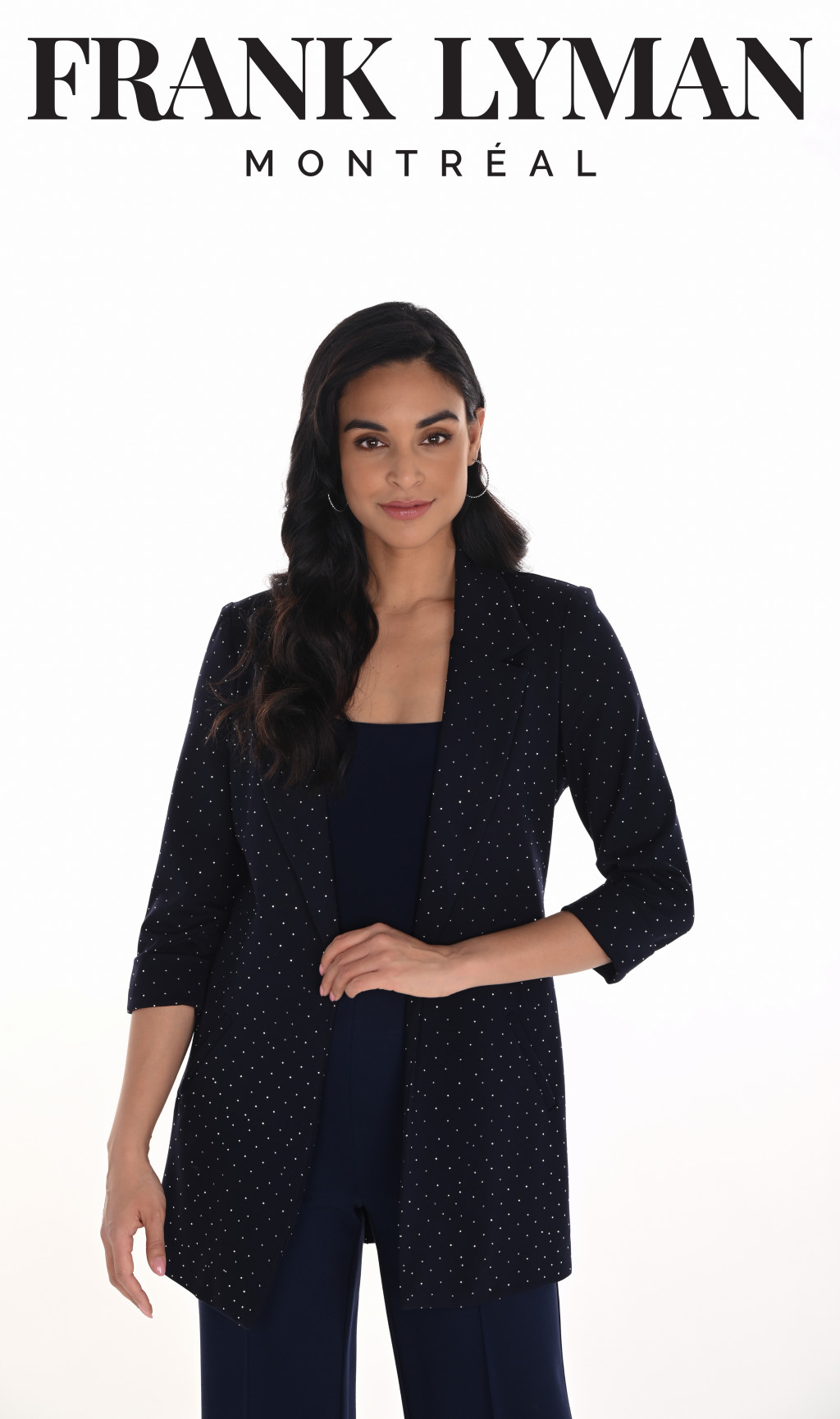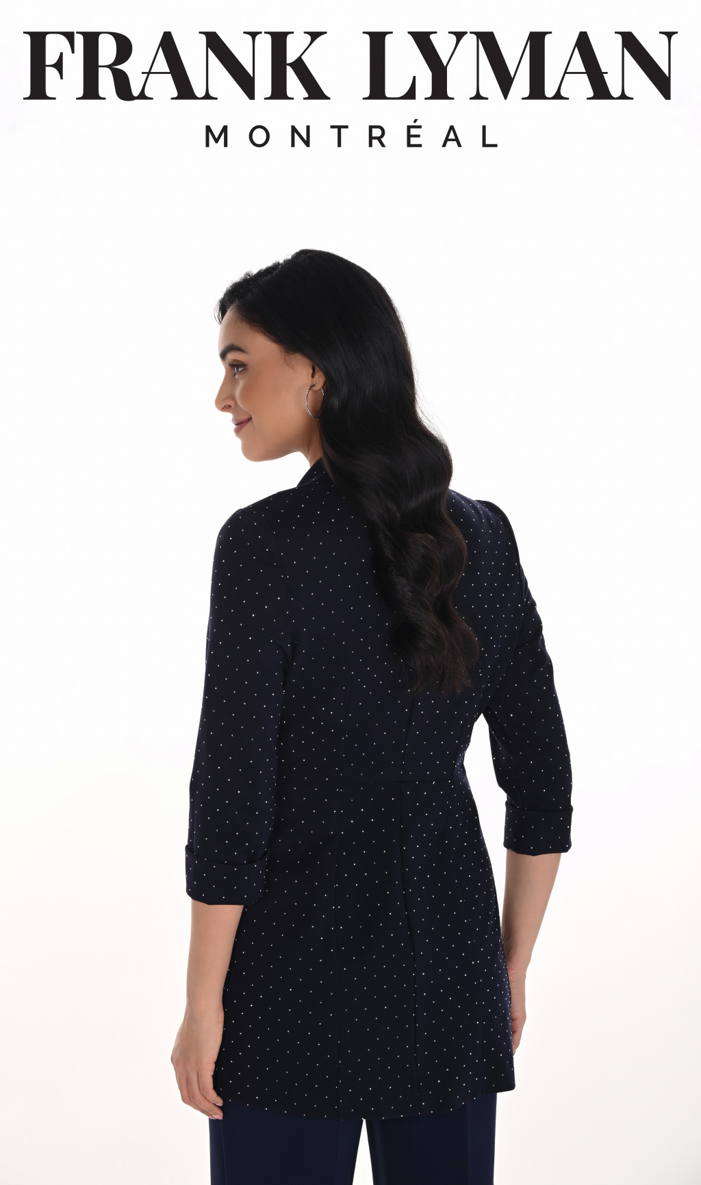 Frank Lyman sötétkék alapon ezüst köves blézer.