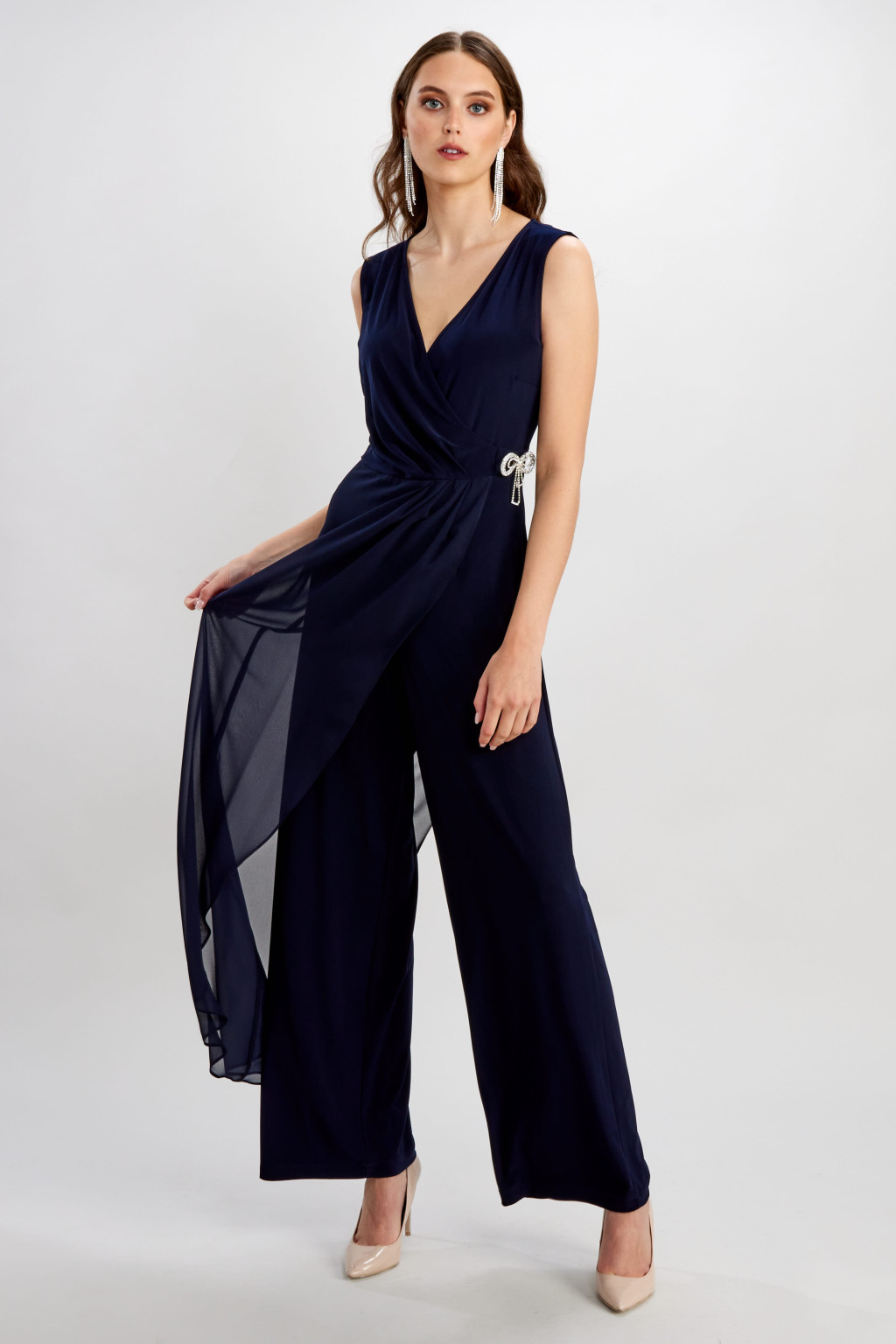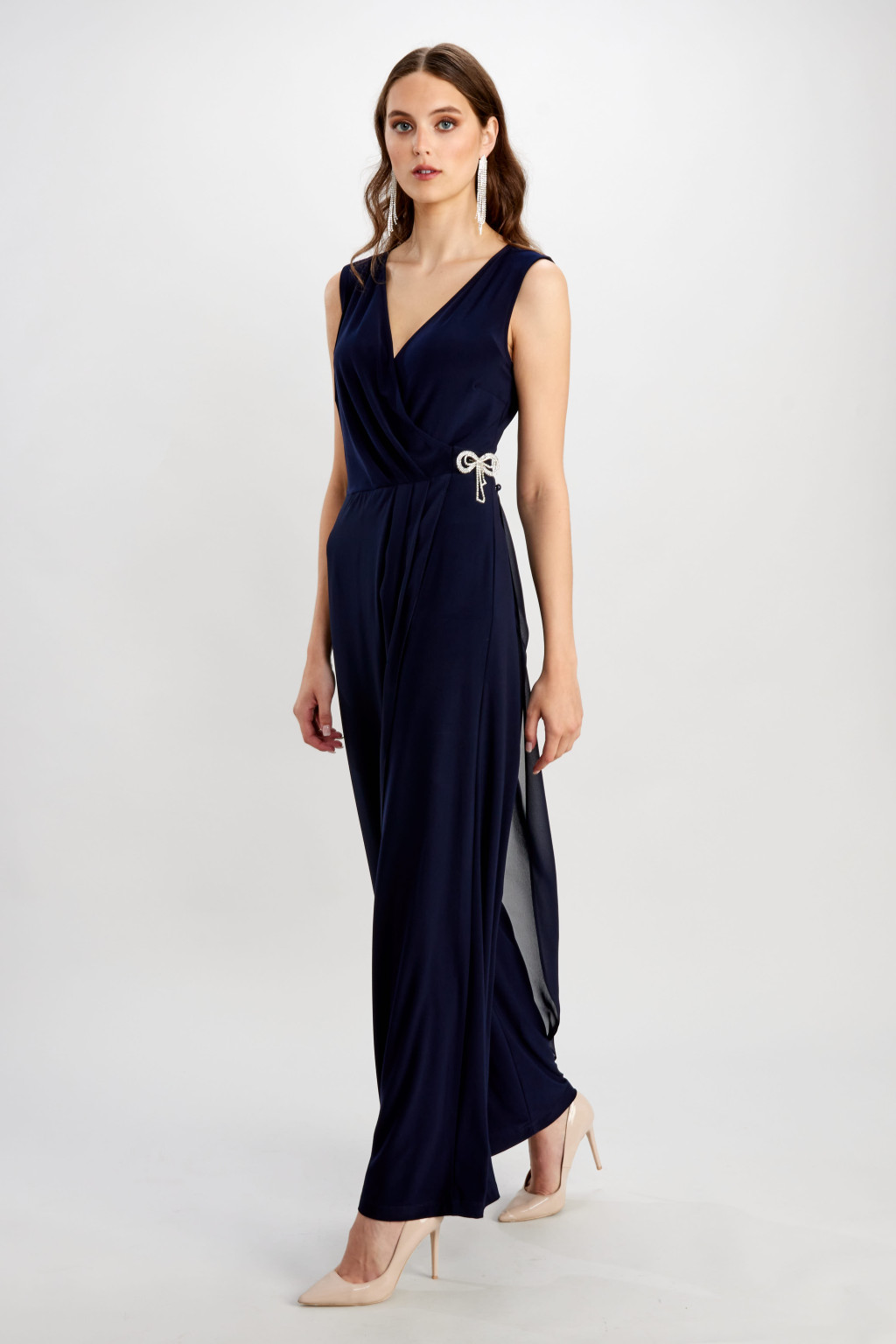 Frank Lyman sötétkék muszlin betétes mellén átlapolt ujjatlan overál