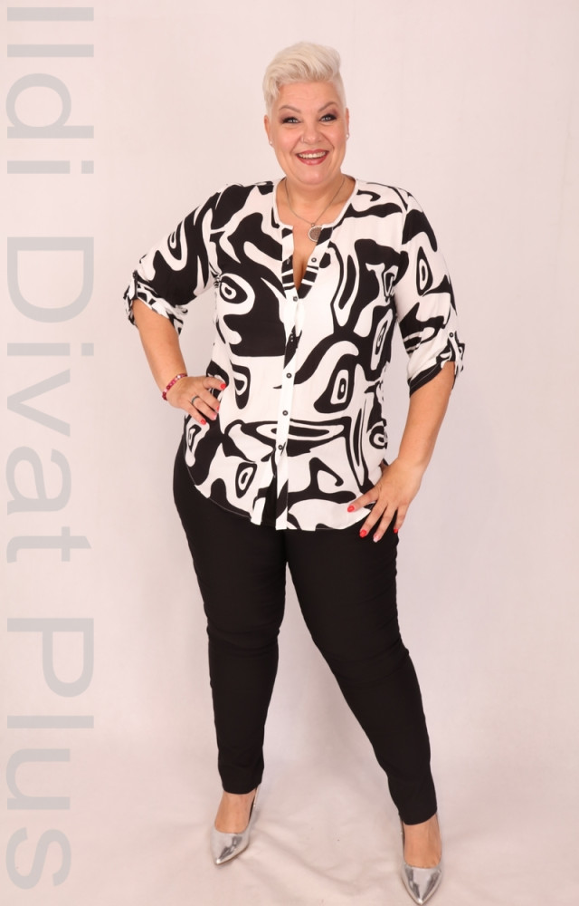 Grandi fehér-fekete mintás, gombos, lezser fazonú felső.