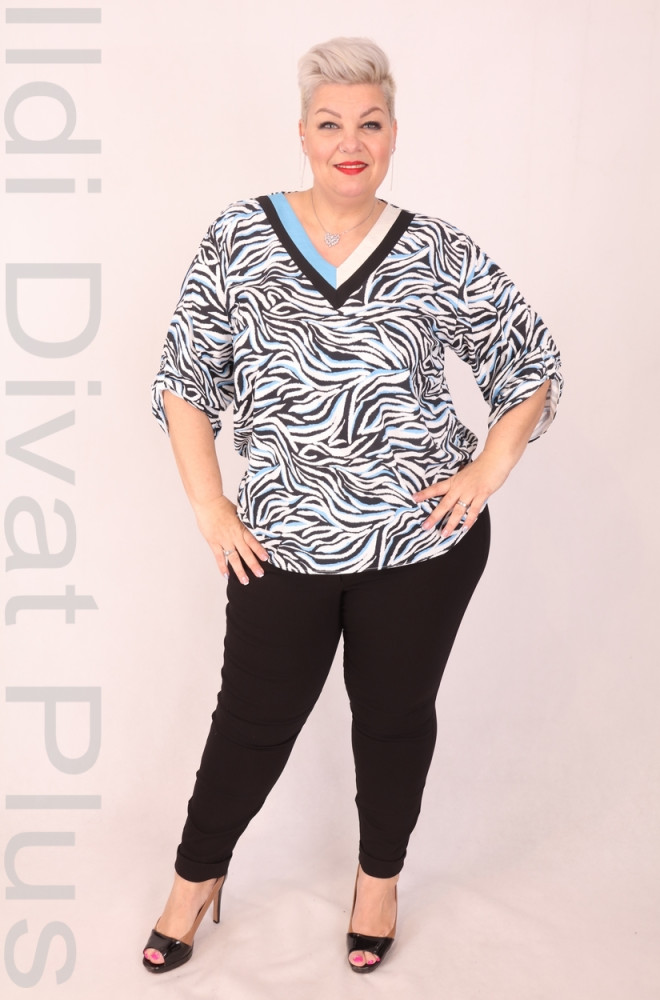 Grandi Fehér-Kék Mintás Ella Blúz