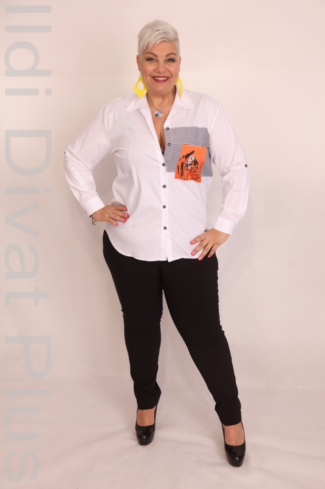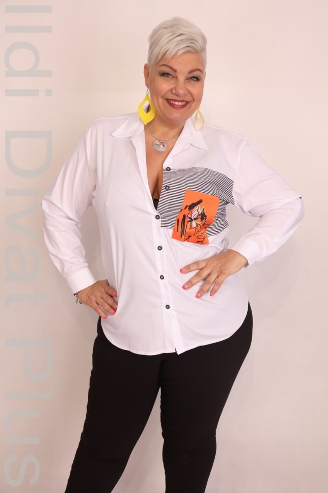 Grandi fehér színű, mell részén mintás, galléros, gombos, egyenes fazonú ing.