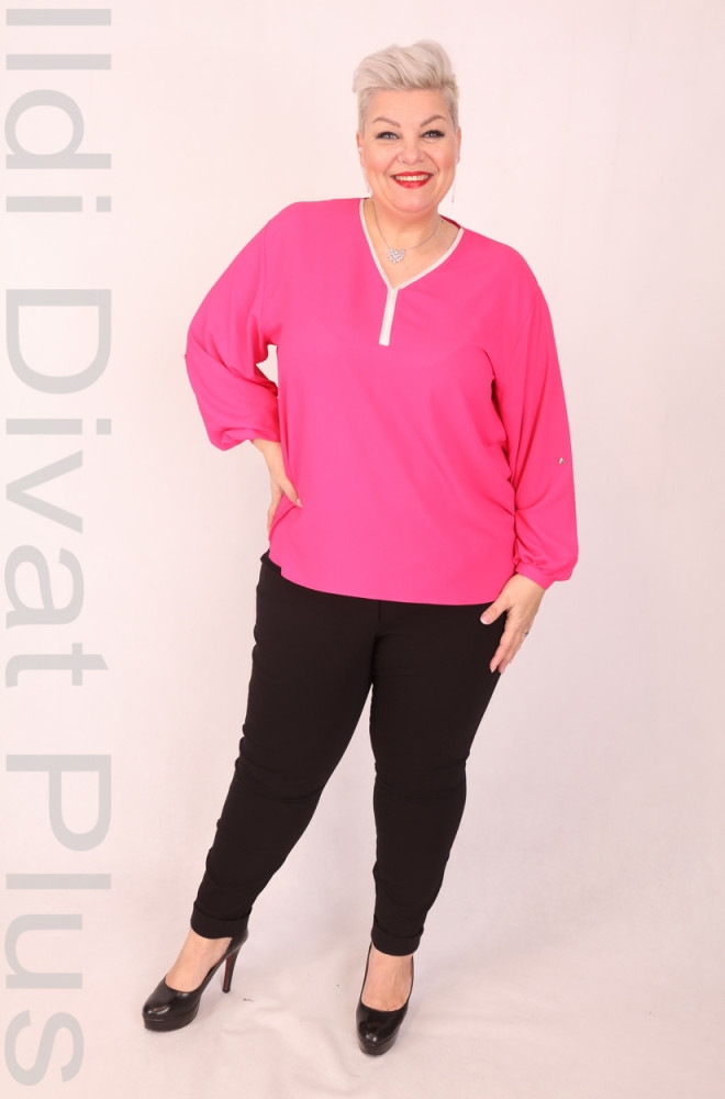 Grandi pink színű, V-kivágott, buggyos ujjú, lezser fazonú blúz.