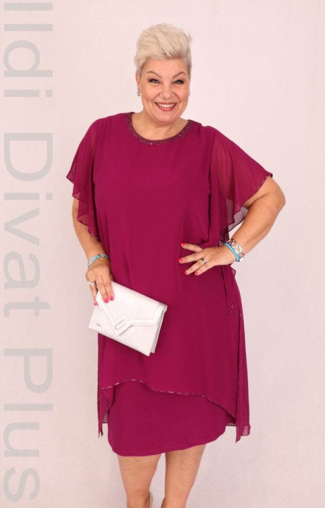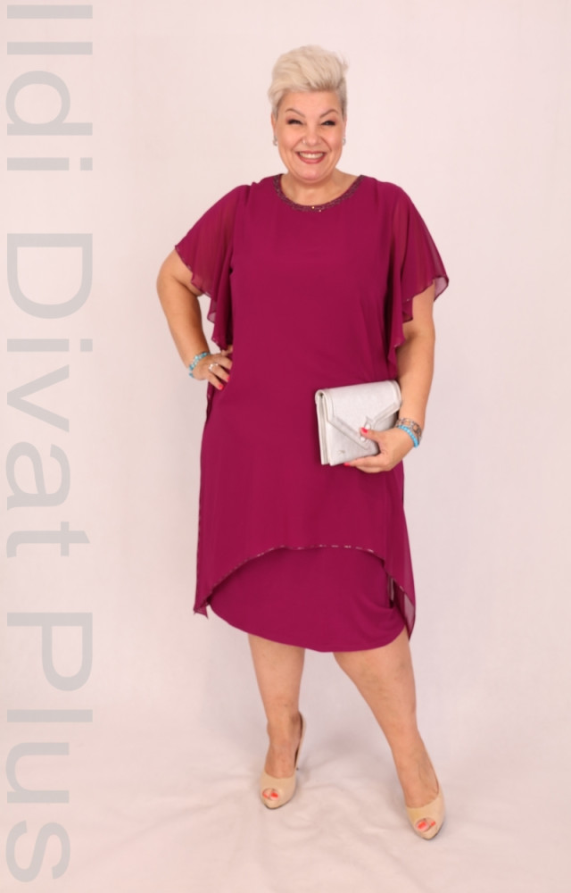 Hesba lila színű, strasszoss muszlin rátétes, lezser fazonú ruha.
