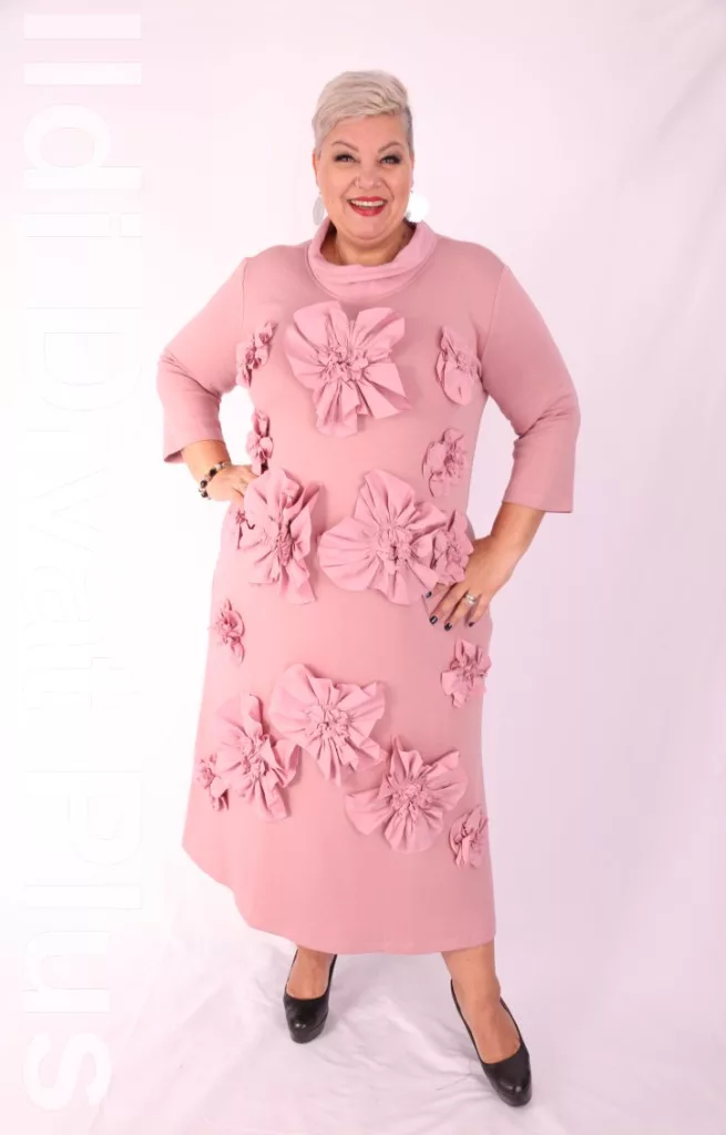 Izar púder alapon 3/d virágmintás galléros ruha.