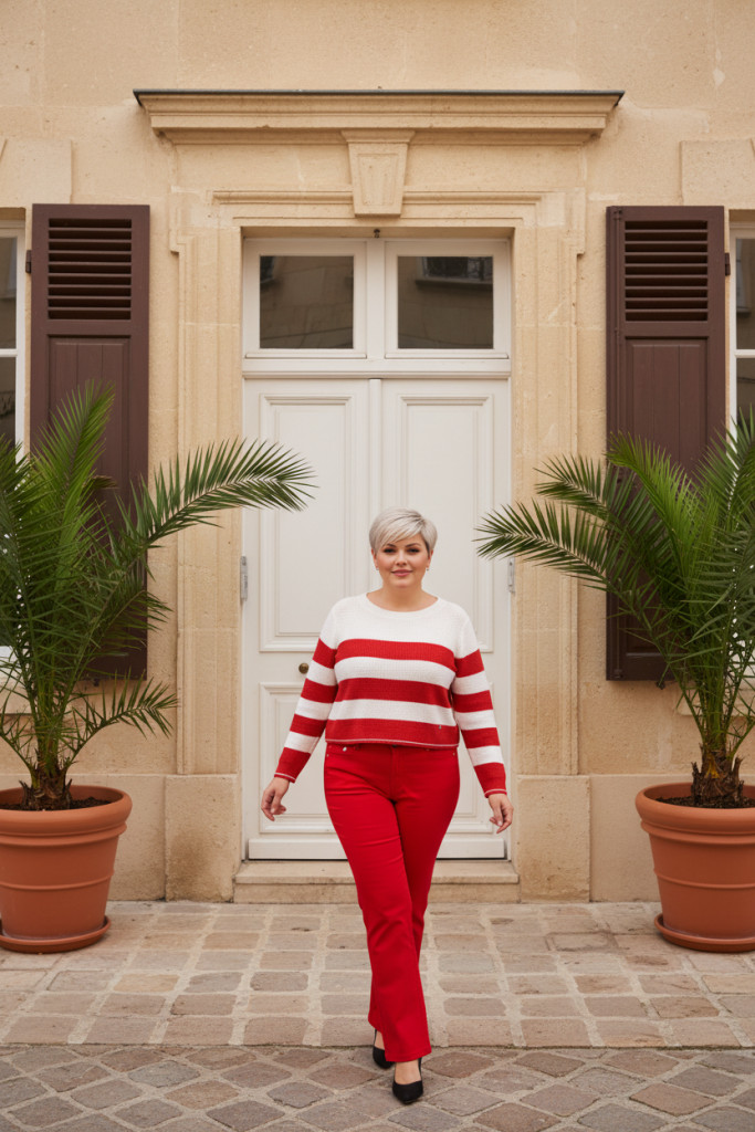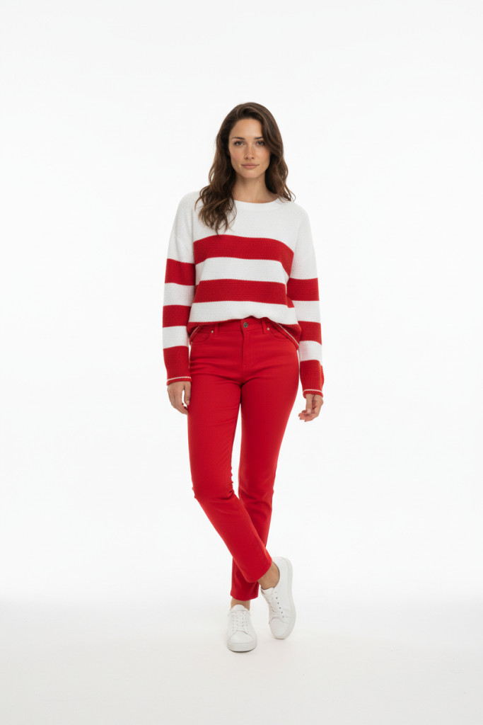 Joy of life fehér-piros vastag csíkos horgolt felső.
