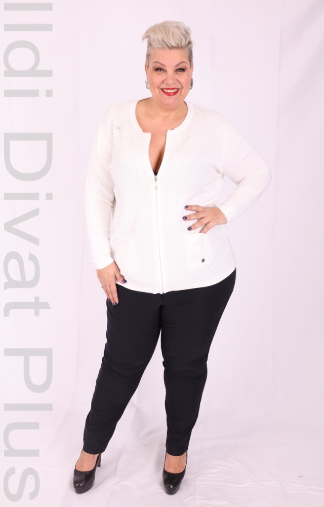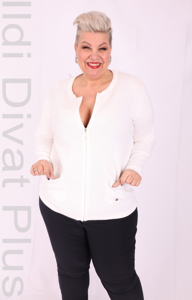 Ekrü anyagában mintás zippes vékony kötött kardigán